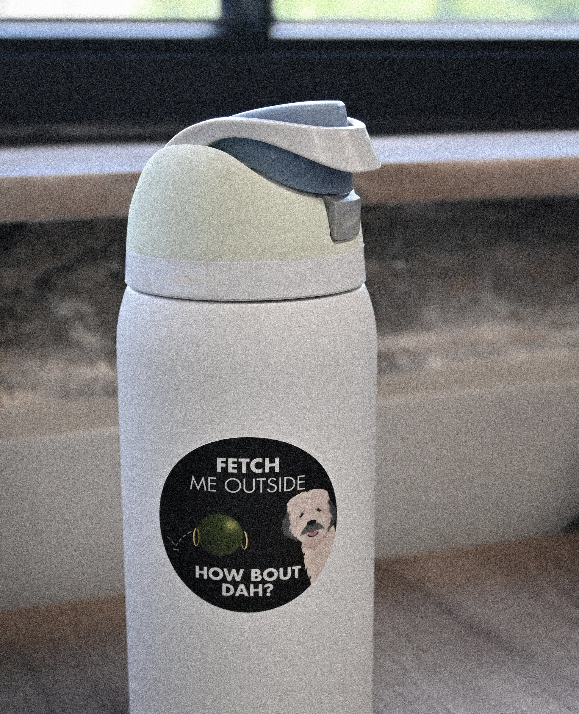 Who could forget this gem from the Dr. P show? Punny dog stickers for dog lovers. “Fetch Me Outside”, by Fetch Boy. Matte sticker, waterproof, size is 2.5”. Great for water bottles, laptops, work and home spaces.